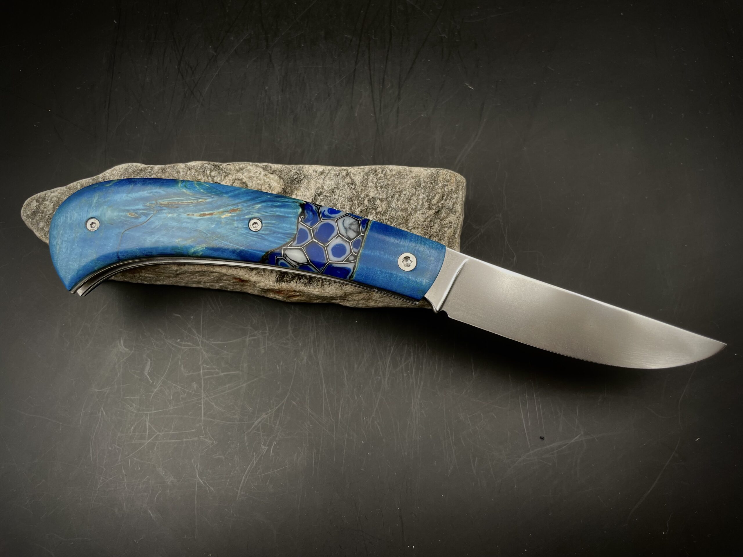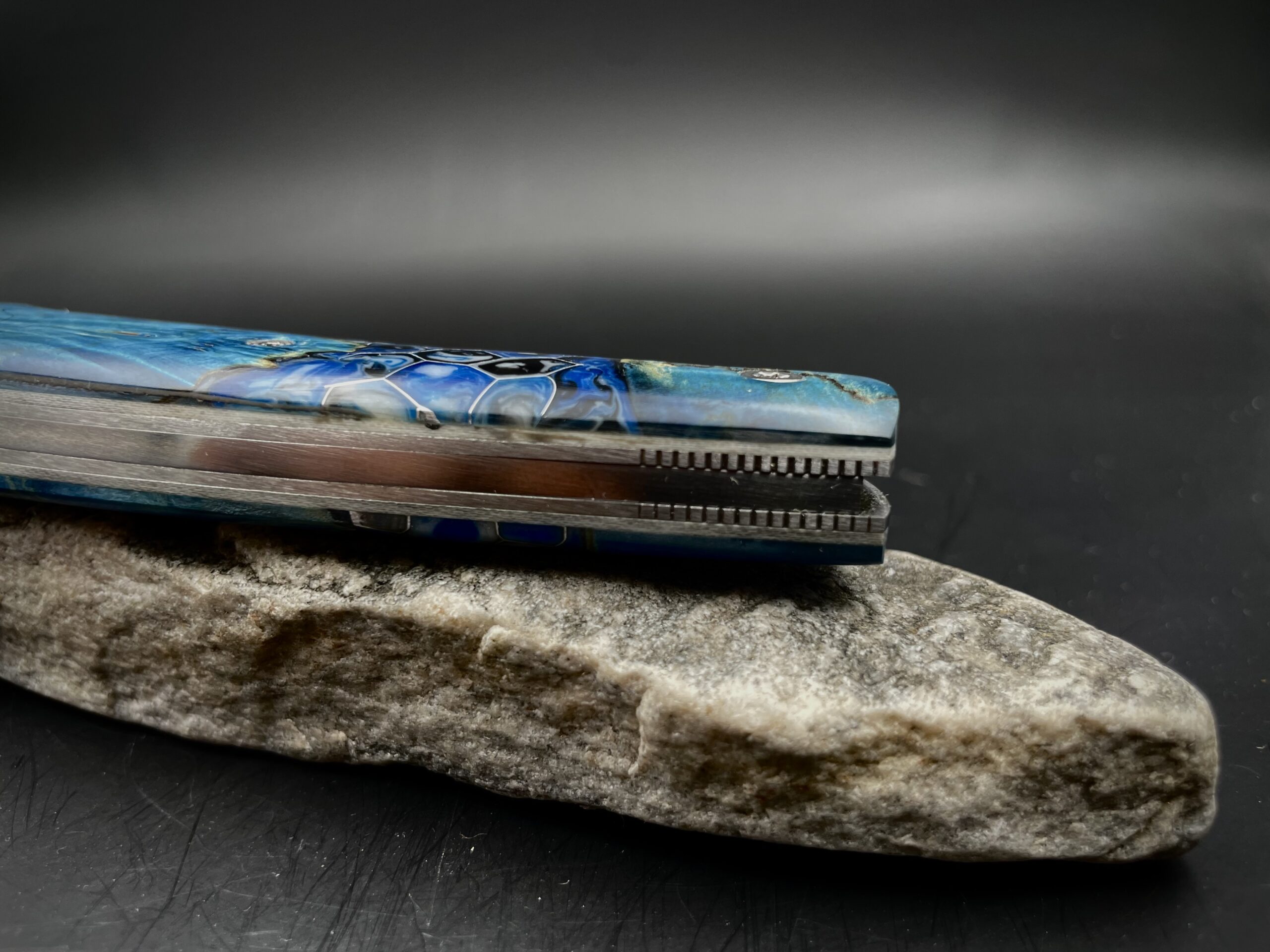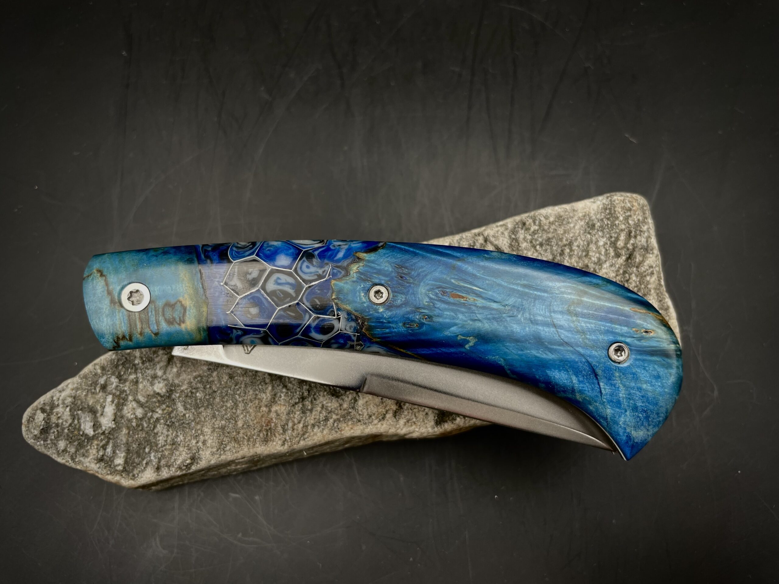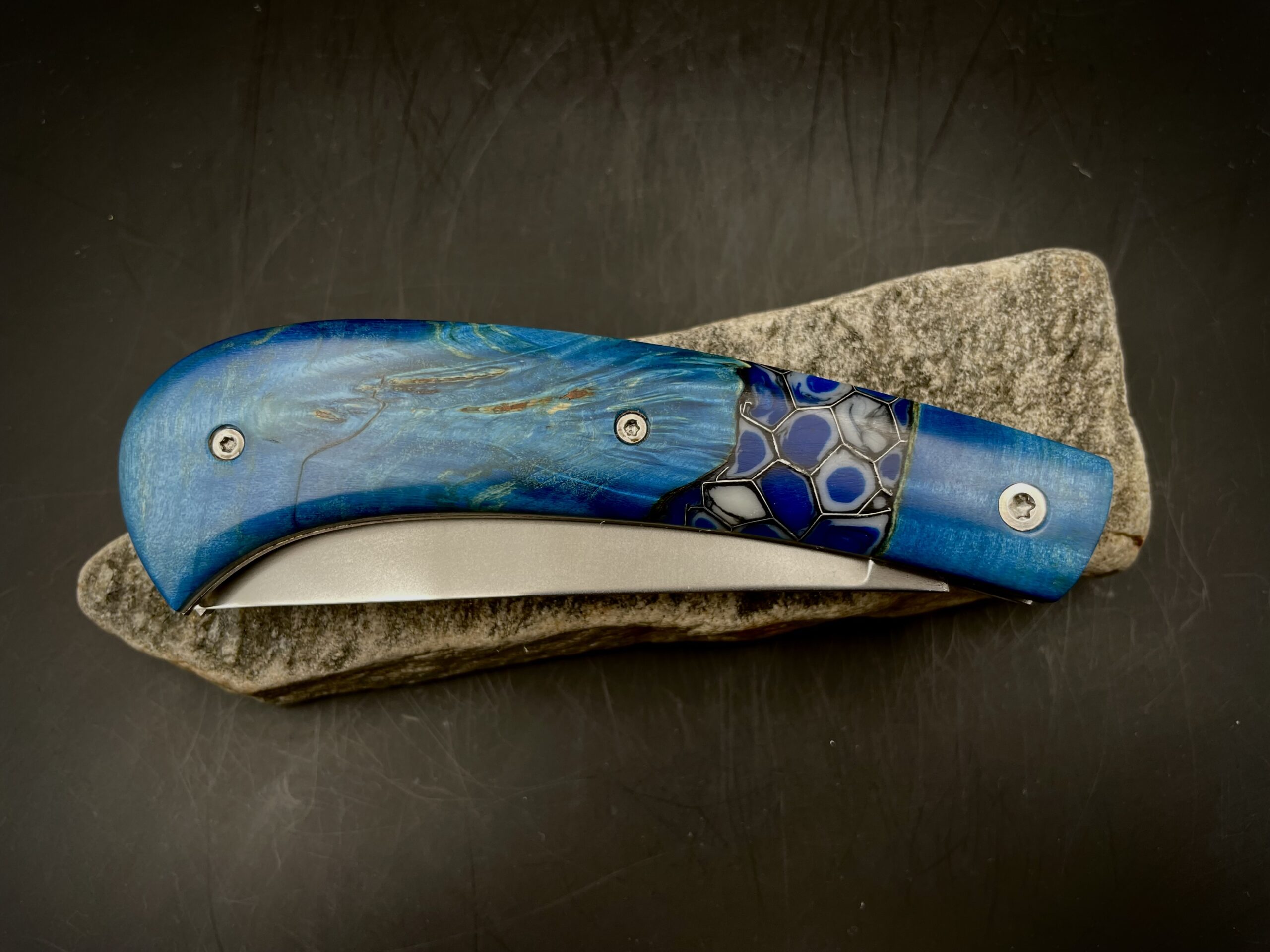 Manche en hybride de loupe de marronnier teinté bleu de 11 cms
