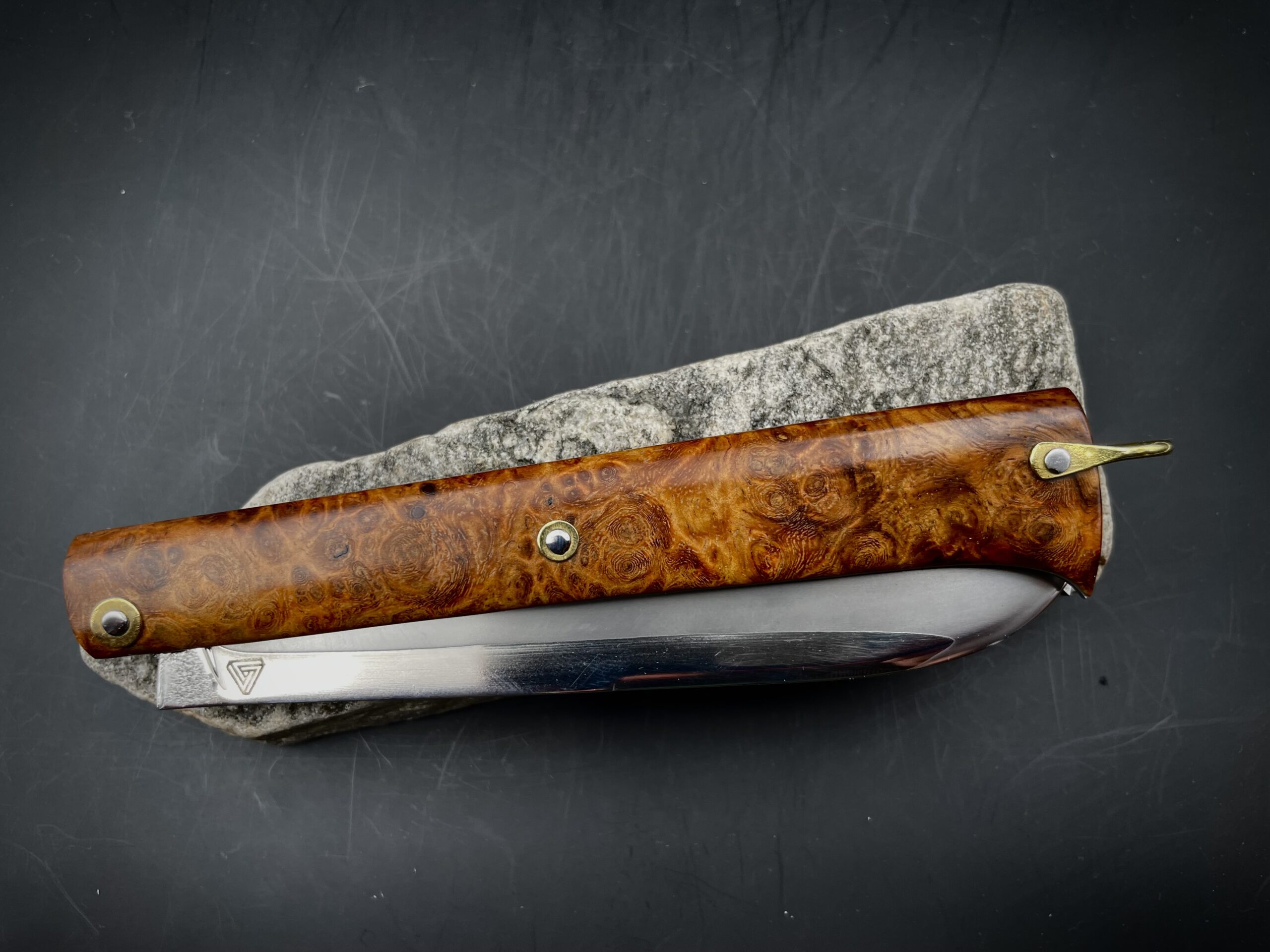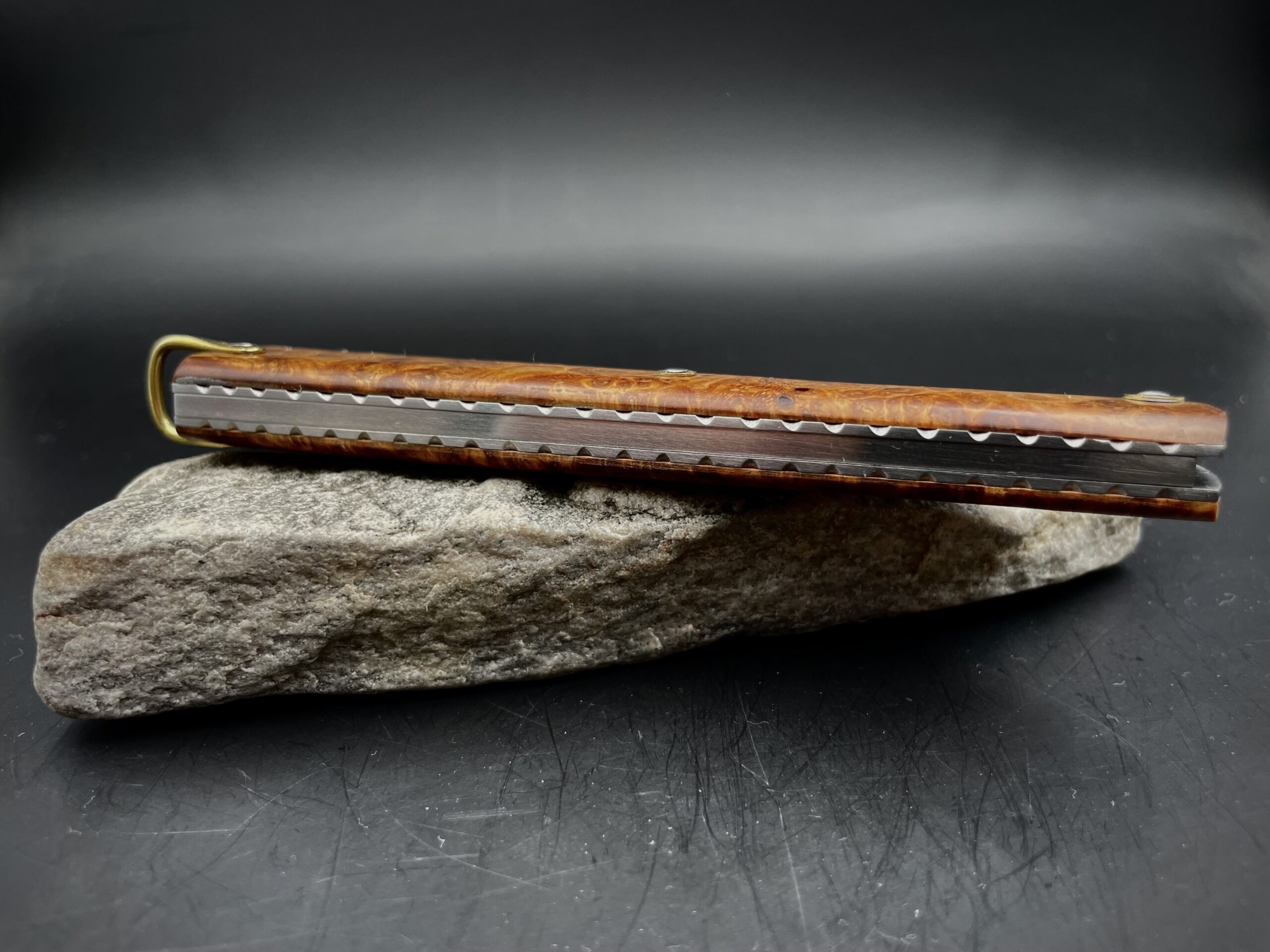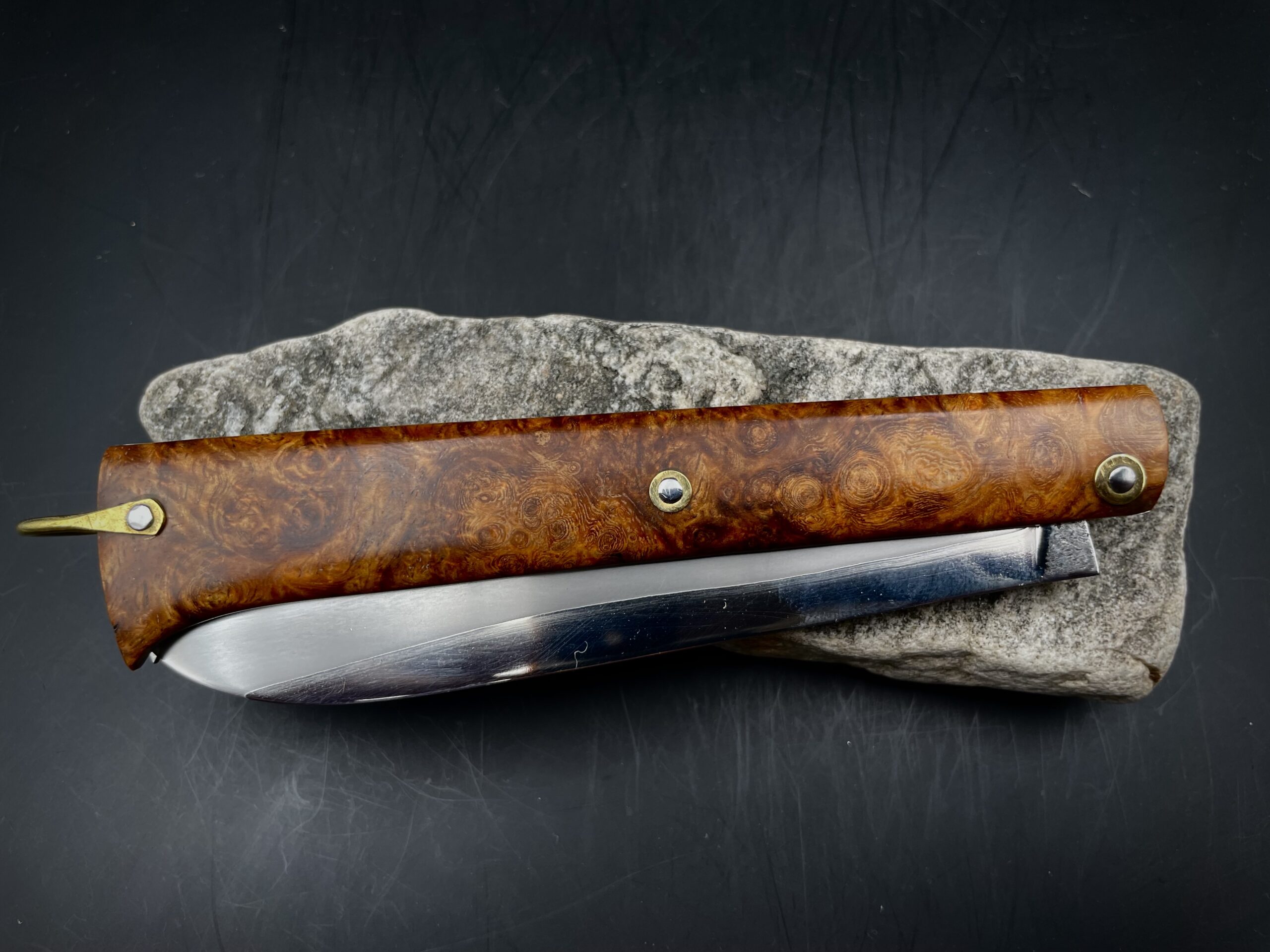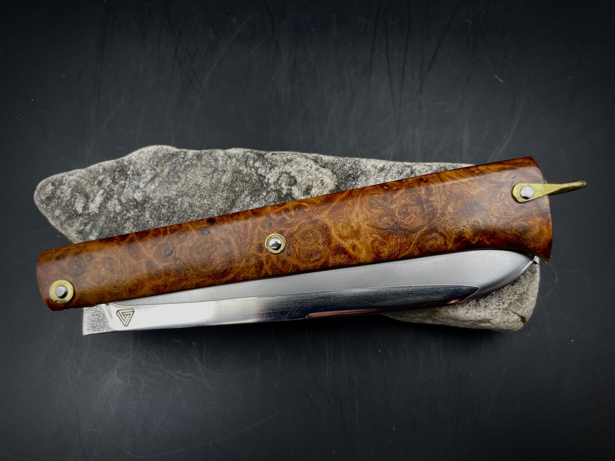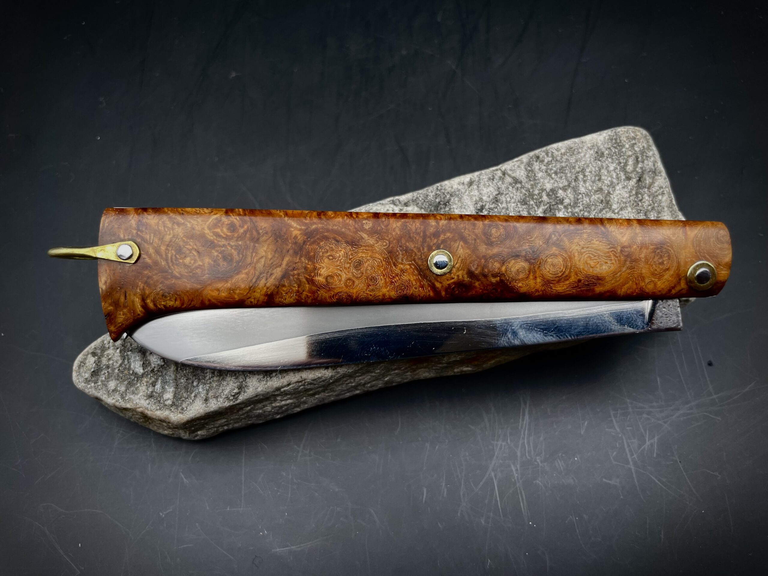 « Stylo » lame sandwich inox et loupe d’amboine