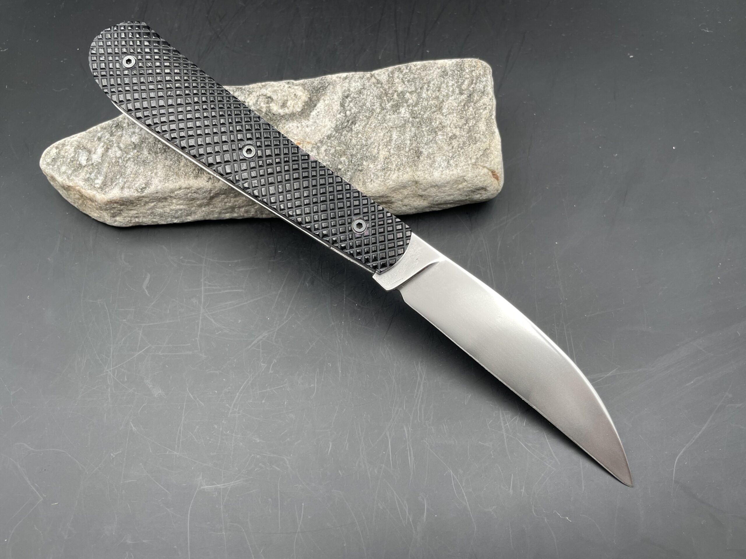 Montage d’un couteau à cran carré (le « persian » visible dans les pages couteaux). Choix des matériaux pour votre manche (hors matériaux « précieux »). Pour pouvoir fabriquer le couteau sur une journée, je prépare le ressort à l’avance : — lors du stage : travail sur la lame (découpe, ajustage, traitements thermiques) et réalisation du manche. Durée : 1 journée de stage. 300 euros (repas compris).